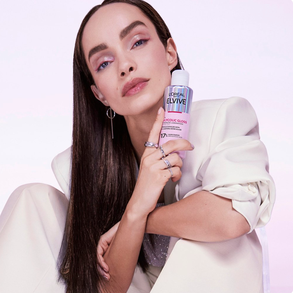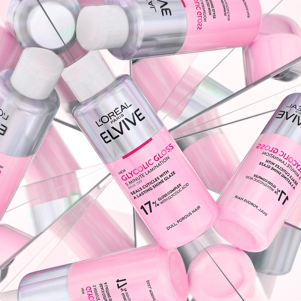 Get salon-like mirror shine at home with L’Oréal Paris Elvive Glycolic Gloss 5 Minute Lamination Treatment. Powered by Glycolic Acid, this rinse-out gloss smooths and resurfaces dull, rough hair, sealing each strand for a reflective, glass-like shine. Hair feels weightless, soft, and visibly glossier after just one use.
