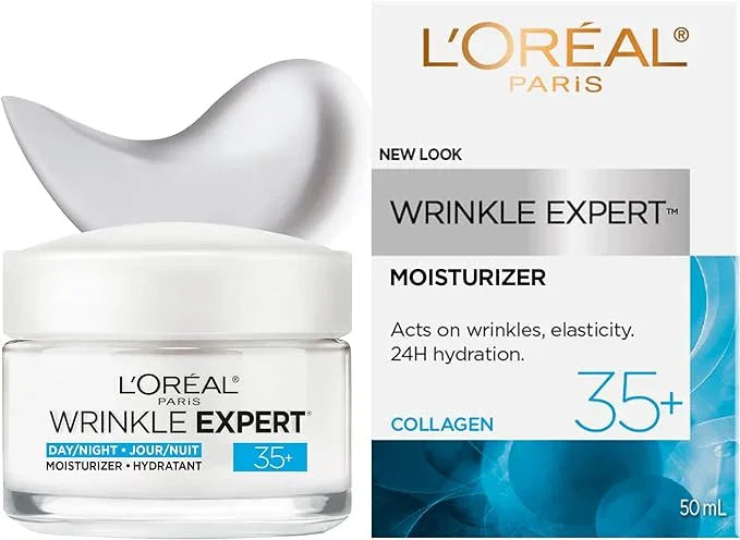Wrinkle Expert is L’Oréal Paris’ first daily anti-wrinkle skincare line for all of life’s stages featuring formulas, with selected ingredients, for younger looking skin at every age. Our moisturizing face cream for ages 35+ contains Collagen to help strengthen skin’s cushion, for smoother, plumper skin. Visibly reduces first signs of aging including fine lines, elasticity loss, and dryness.